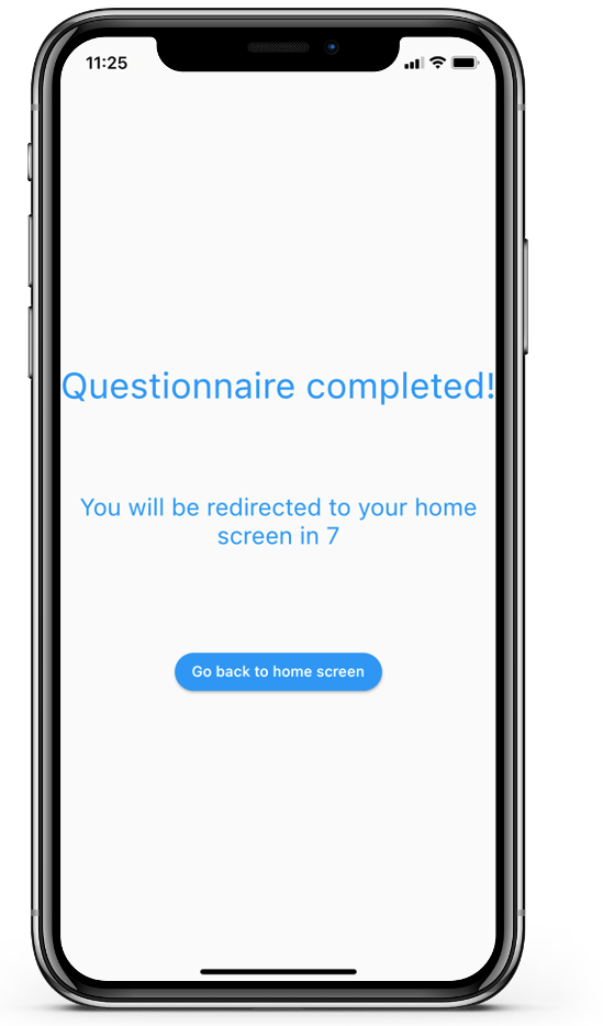 As you can see, we did not add a Command item to this questionnaire. If clients now fill in the questionnaire on exercising, they will see this screen after completing it and they will be redirected to the home page of the app: