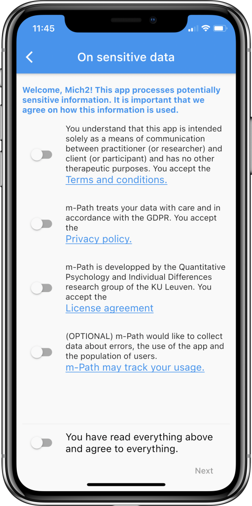 m-Path is a totally free tool for researchers and their participants. Download the app or register for the practitioners online dashboard!