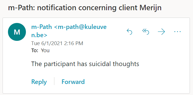 • Add in Question or statement the content of your mail (E.g. The participant has suicidal thoughts)