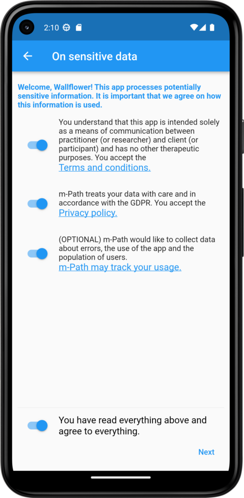 3. Data access permission is granted to the m-Path app on the participant’s phone