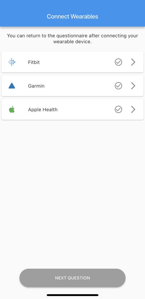An effective approach is to include the Connect Wearable item in an intake questionnaire that’s automatically triggered when participants first join your study. This ensures that wearable data collection begins immediately upon enrollment. This can also be used with invitation templates if you’re running a larger study, allowing you to bulk generate invitation codes with the wearable setup included (or even send custom invitation pages to participants explaining how to create accounts with the wearable manufacturer).