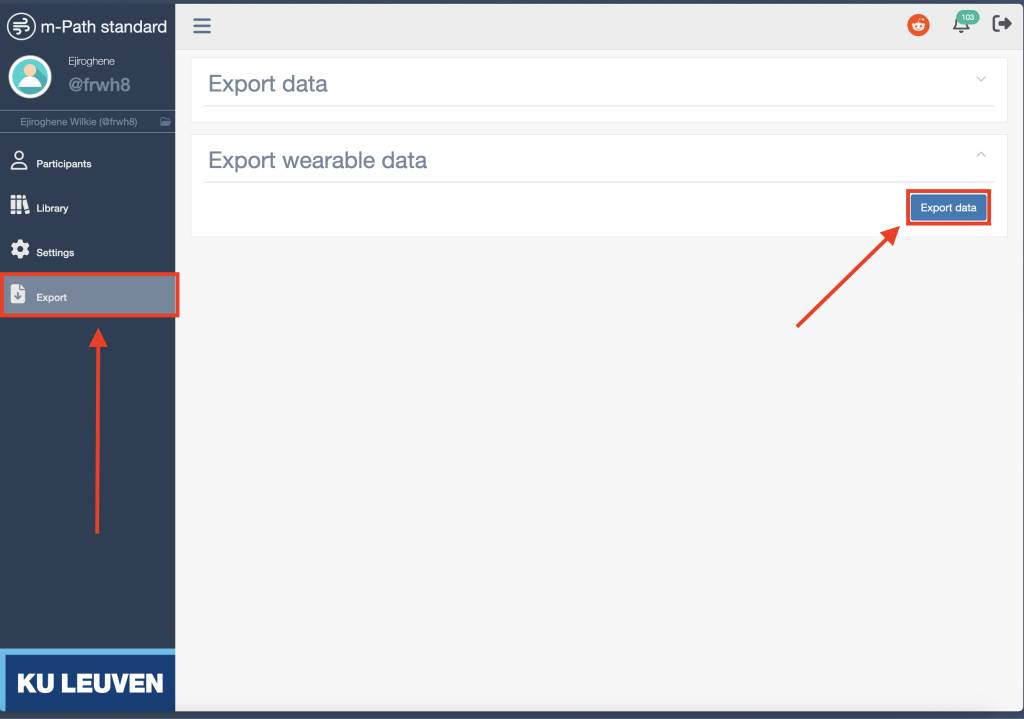 Researchers can export collected wearable data through the m-Path dashboard. The export function includes both the dynamic and daily wearable data in JSON format, making it easy to integrate with statistical analysis software.